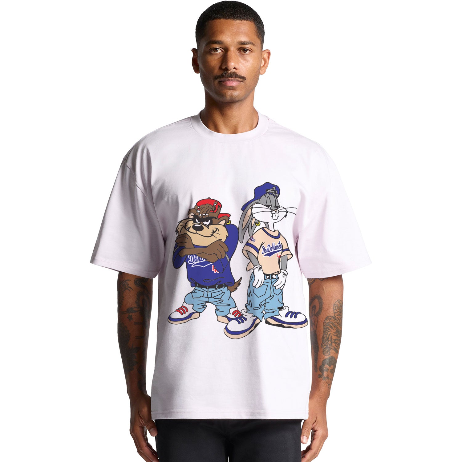 Step back into the golden age of hip hop with our 90's Kris Kross DonDeMarco T-shirt. Featuring bold, retro graphics paying tribute to the iconic rap duo Kris Kross